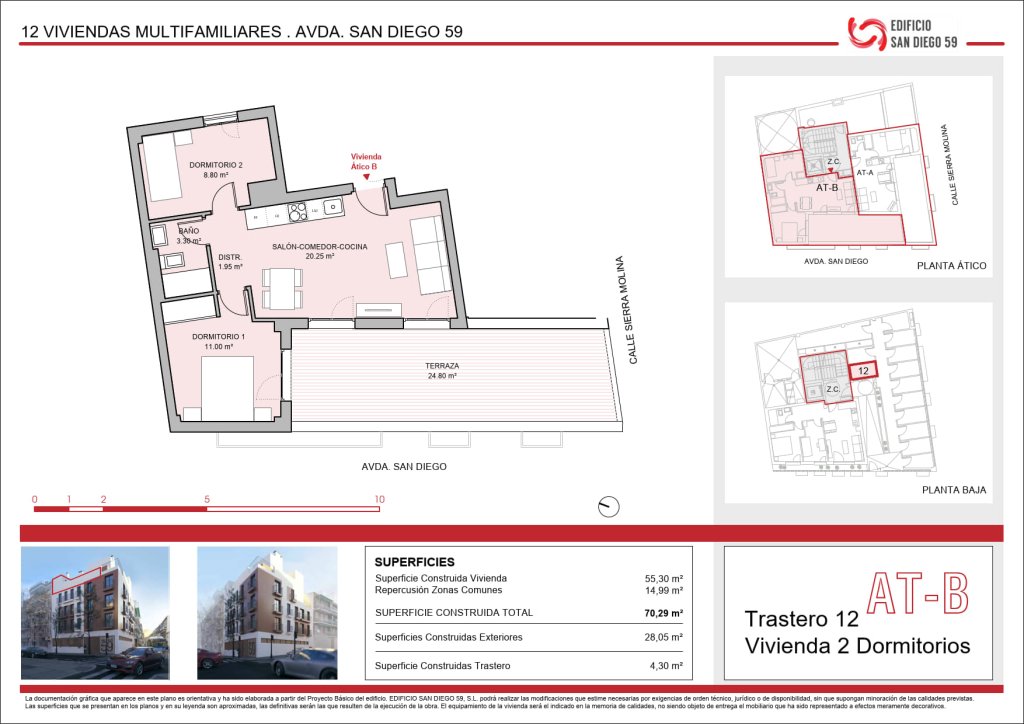 Ático de 2 dormitorios, 1 baño y salón-cocina-comedor