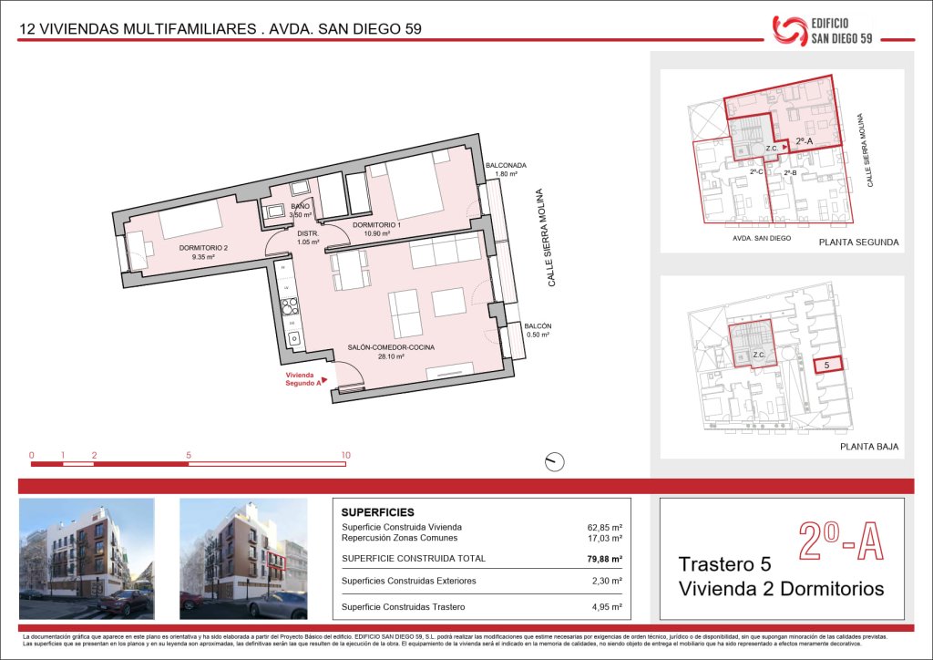 Segundo piso vivienda 2 dormitorios 1 baño con balcón y balconada. Salón-cocina-comedor