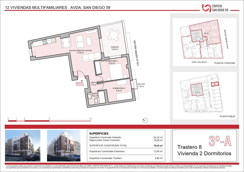 Tercer piso de 2 dormitorios, 1 baño y salón-cocina-comedor
